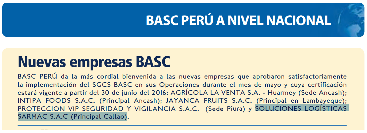 ¡GRUPO SARMAC ESTÁ OFICIALMENTE CERTIFICADO POR BASC!